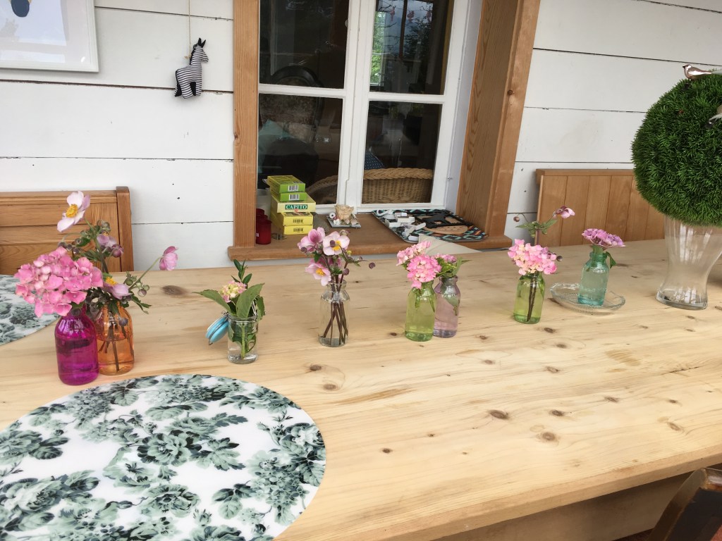 Blumengläser mit Blumen