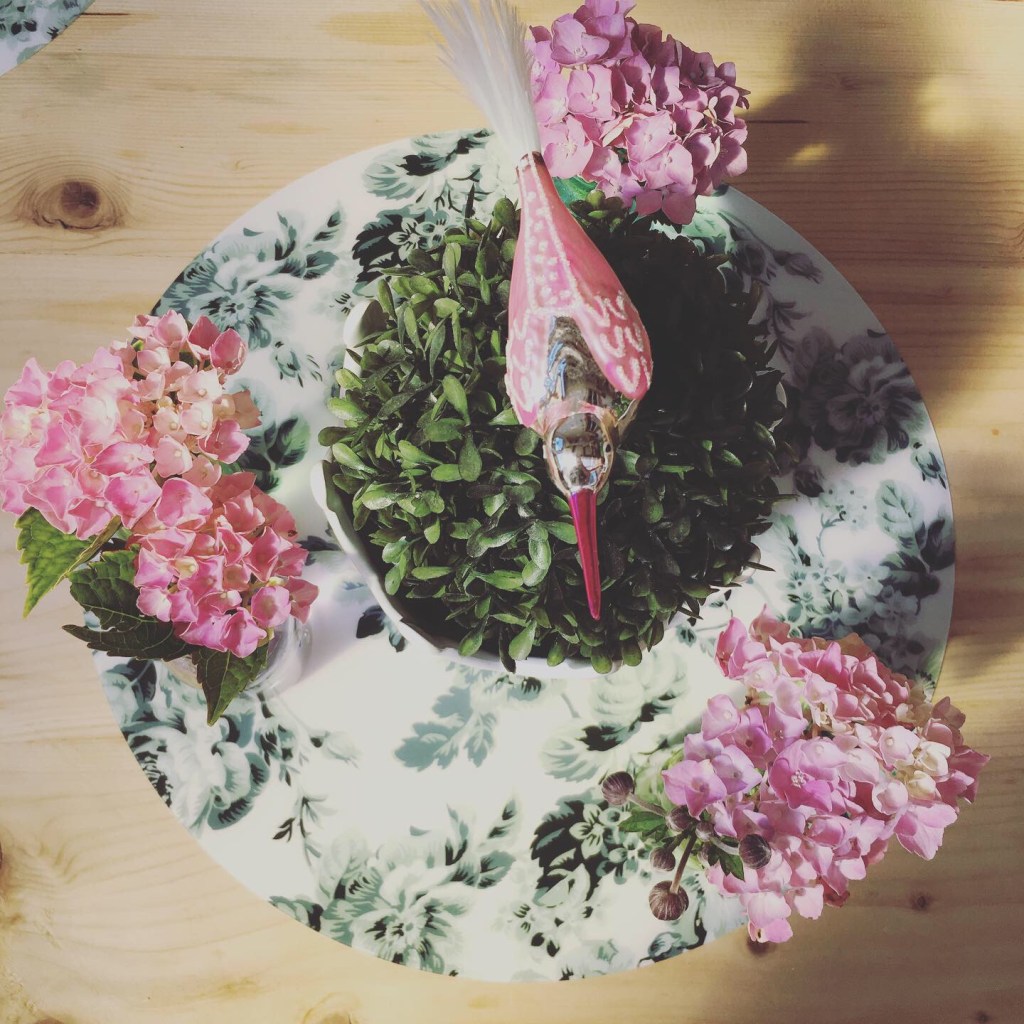 Blumenplatte mit Vogel
